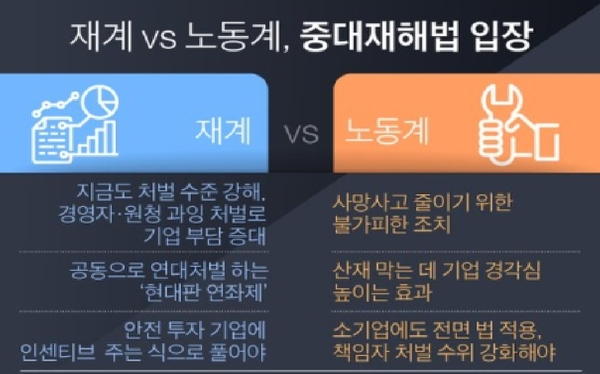 재계에선 “세계적으로 유례없는 악법”이라고 반발했고, 노동계는 “처벌이 너무 약하다”고 불만이다. 산업 현장의 안전을 누가 마다하겠는가. 하지만 과연 무거운 징벌만이 능사인지, 그렇게 하면 산업재해가 정말 줄어들지 의문이다.
