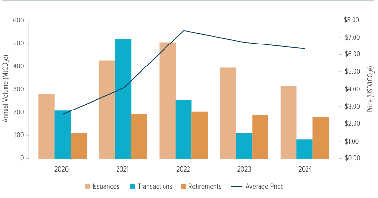 탄소 크레딧 폐기는 1억8200만톤을 기록, 2023년의 1억8900만톤보다 소폭 감소했으나, 안정된 흐름이 이어졌다.