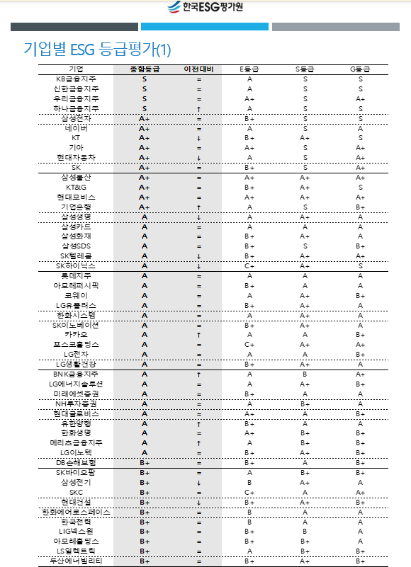 - 신한금융·네이버·KB금융·하나금융·KT·우리금융...ESG 최고 'S등급'