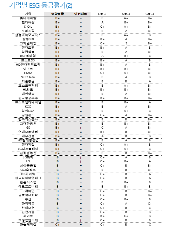 - ESG평가원 '24년 상장사 정례 평가...평균 69.5점 전년比 0.6점↑ B+등급