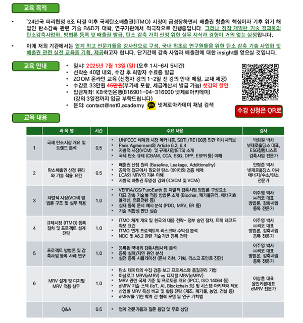 교육 신청 및 자세한 문의는 카카오톡 채널 ‘넷제로아카데미’ 또는 contact@net0.academy로 가능하다.