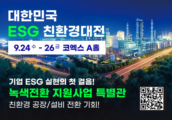 [ESG경제신문=김대우 기자] 환경부가 주최하고 한국환경산업기술원과 ㈜메쎄이상이 공동 주관하는 ‘2025 대한민국 ESG 친환경대전(ESG ECO EXPO KOREA)’이 오는 9월 24일부터 26일까지 3일간 서울 코엑스 A홀에서 개최된다.