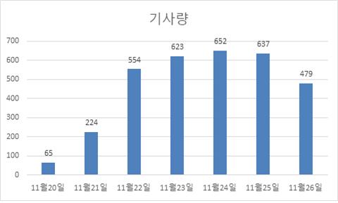 지난 주(11월20일~11월27일)에 있었던 ESG 관련 뉴스 동향을 주요 기업과 이슈 중심으로 정리해 드립니다. 11개 중앙지, 8개 경제지, 28개 지방종합지, 5개 방송사, 2개 전자·디지털 전문지 등에 보도된 ESG 관련 뉴스 3345건을 한국언론진흥재단의 빅카인즈와 자체 구축한 뉴스 빅데이터 분석 시스템으로 분석했습니다. 한 주간 많이 보도된 뉴스의 단어를 중심으로 분석합니다.