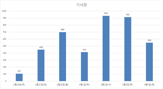 한편, 지난 주(2월26일~3월4일) 주요 언론의 ESG 뉴스 건수는 4174건으로, 전주(4806건)에 비해 13.2% 줄었다.