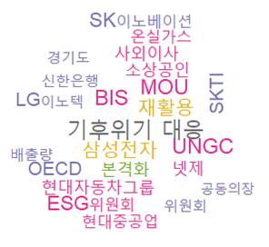 G(거버넌스) 관련 키워드는 녹색채권과 자금세탁 방지, 지배구조 헌장 등이 반복됐다. 특히 지배구조 개선, 투명경영 등으로 반부패 추진 키워드가 눈에 띄면서 G 지수가 상승한 요인으로 작용했다.