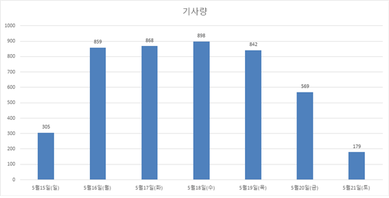 한편, 지난 주(5월15일~21일) 주요 언론의 ESG 뉴스 건수는 4646 건으로, 동반성장, 자원순환, 폐플라스틱 재활용, 봉사활동, 기후위기 등의 키워드 빈도수가 높았다.