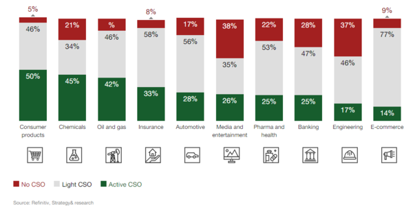 지난해 경영컨설팅 PwC가 조사한 1,640개 상장기업 중 28%가 자사의 CSO가 최고 경영진 수준인 C 레벨 임원에 속한다고 말했다. 이는 2016년 조사 때의 9%에 비해서 크게 늘어난 수치다.