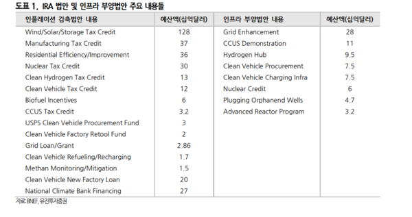 유진투자증권의 한병화 이코노미스트는 16일자 보고서에서 “미국의 그린부양안(인플레 감축법)은 EU의 러시아 의존도를 탈피하기 위한 그린산업 투자와 동시에 진행되기 때문에 글로벌 시장에 미치는 영향이 배가될 것”이라고 분석했다.