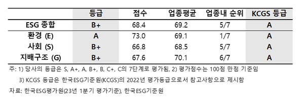 ESG 수준은 B+등급…업종 평균에 못미쳐