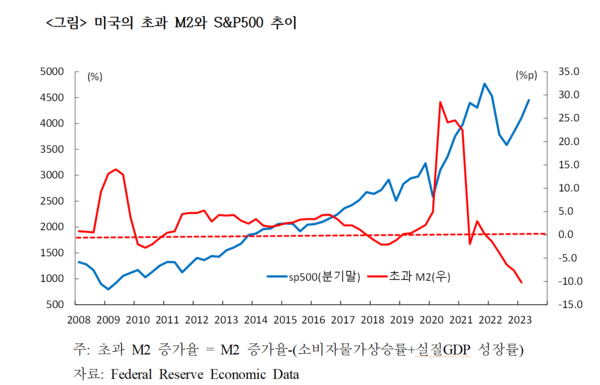둘째, 미국의 가계 저축률이 크게 떨어졌다. 지난해 저축률이 3.7%로 장기평균(2000~22년, 6.6%)보다 낮을 뿐만 아니라 금융위기 직전 해였던 2007년 3.4% 이후 최저치를 기록했다. 가계가 저축한 돈을 많이 써버렸기 때문에 앞으로 지출할 여력이 줄었다는 의미이다. 올해 1~5월에는 저축률이 평균 4.3%로 오르고 있다. 이제 소비를 상대적으로 줄이고 있다는 증거다.