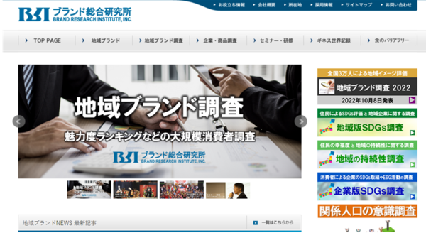 일본에서 지자체의 SDGs 추진 상황을 평가하는 또 다른 기관은 브랜드종합연구소이다. 이 연구소는 2006년부터 매년 전국 지자체의 지역 주민들을 대상으로 거주하는 지자체의 인지도, 매력도 등 89항목을 조사해서 지자체의 브랜드를 평가해왔다.