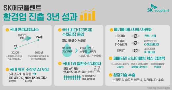 SK에코플랜트는 2020년 폐기물처리업체인 '환경시설관리(EMC)‘를 인수하면서 환경업에 본격 진출했으며 진출 3주년을 맞아 22일 그간의 성과를 수치화해 발표했다.