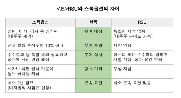 RSU, 스톡옵션과 달리 대주주에게도 제공 가능