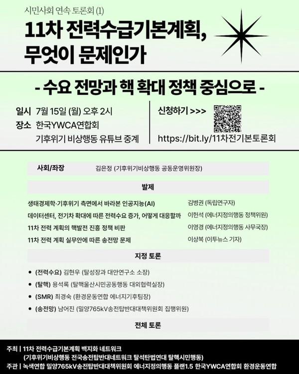15일 오후 2시 한국 YWCA연합회에서...유튜브 중계 관련기사 미 IRA 보조금 32% 한국 기업들이 받아...수출 위협하는 부메랑되나 11차 전기본 시민사회 2차 토론회...25일 오후 2시 개최 저작권자 © ESG경제 무단전재 및 재배포 금지 키워드 Tags #11차 전력수급기본계획 #데이터센터 #송전망 #핵발전 #환경운동연합 김현경 기자 news@esgeconomy.com 다른기사 보기 SNS 기사보내기 페이스북(으)로 기사보내기 트위터(으)로 기사보내기 카카오톡(으)로 기사보내기 URL복사(으)로 기사보내기 이메일(으)로 기사보내기 다른 공유 찾기 기사저장 당신만 안 본 뉴스 해상풍력 20MW급 초대형 터빈 양산 추진...SMR 개발 시동 공시는 잘하는데 사고는 막지 못한다…국내기업 ESG 실행력 위기 사인 글로벌, 시에라리온 ‘국가 블록체인’ 만든다 美정부, 日 대미 투자금으로 원전 10기 짓는다 CJ제일제당에 무슨 일이...공정위 '담합' 조사에 검찰 수사까지 LS 중복상장 공방...전 상장사 8~18% 중복상장 문제에 노출 진옥동 신한금융 회장 연임에 쏠린 눈...비은행 실적 개선 관심 해상풍력 20MW급 초대형 터빈 양산 추진...SMR 개발 시동 댓글삭제 삭제한 댓글은 다시 복구할 수 없습니다. 그래도 삭제하시겠습니까? 비밀번호 닫기 기사 댓글 0 댓글 접기 로그인 후 이용 가능합니다. 댓글 내용입력 비회원 로그인 이름 비밀번호 댓글 내용입력 댓글쓰기 계정을 선택하시면 로그인·계정인증을 통해 댓글을 남기실 수 있습니다. 회원 로그인 비회원 글쓰기 이름 비밀번호 자동등록방지 로그인 옵션 창닫기 주요기사 해상풍력 20MW급 초대형 터빈 양산 추진...SMR 개발 시동 SBS '좋은 아침' 박정호 한의사 '속 체온 저하, 염증 악순환 신호' ‘삼양식품 자사주 선제 매각’ 논란 확산…“자산 취급 나쁜 선례” AI 데이터센터는 “고탄소 위험 자산”...녹색금융 쳬계 필수적 [김광기 칼럼] 자사주 소각, 법으로 강제할 일 아니다 성훈한의원, 겨울철 피부·여성질환 특화 위해 이혜성 원장 영입