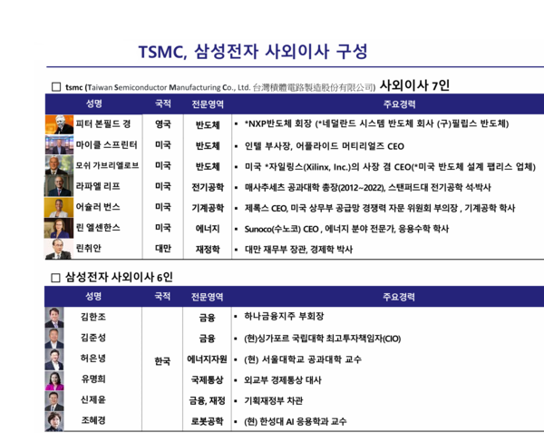 - "삼성전자 이사회 개편 실망...TSMC 모리츠 창에게 배워야"