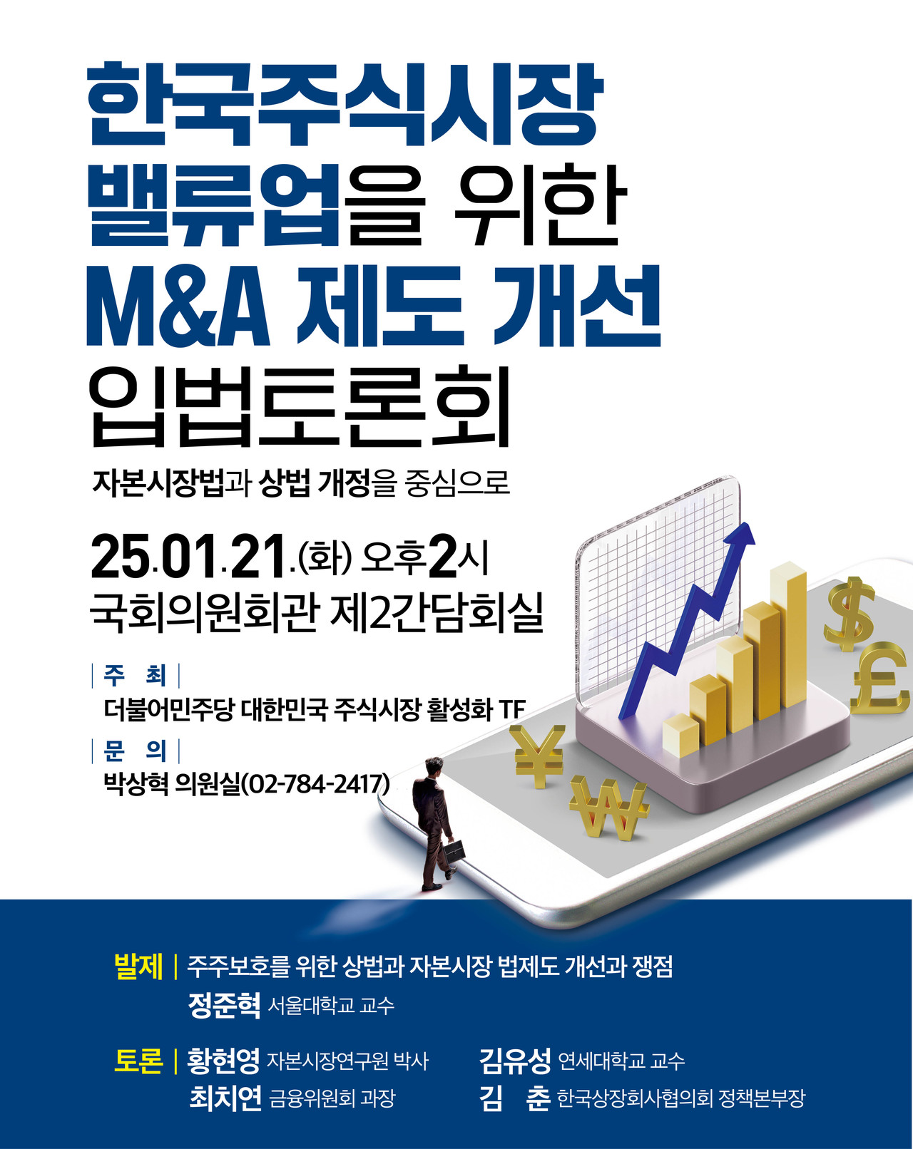[ESG경제신문=김연지 기자] 더불어민주당 대한민국 주식시장 활성화 태스크포스가 오는 21일 국회의원회관 제2간담회실에서 '한국주식시장 밸류업을 위한 M&A 제도 개선 입법토론회'를 개최한다.